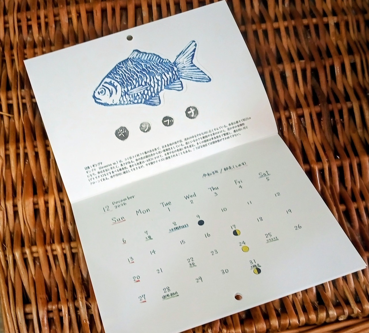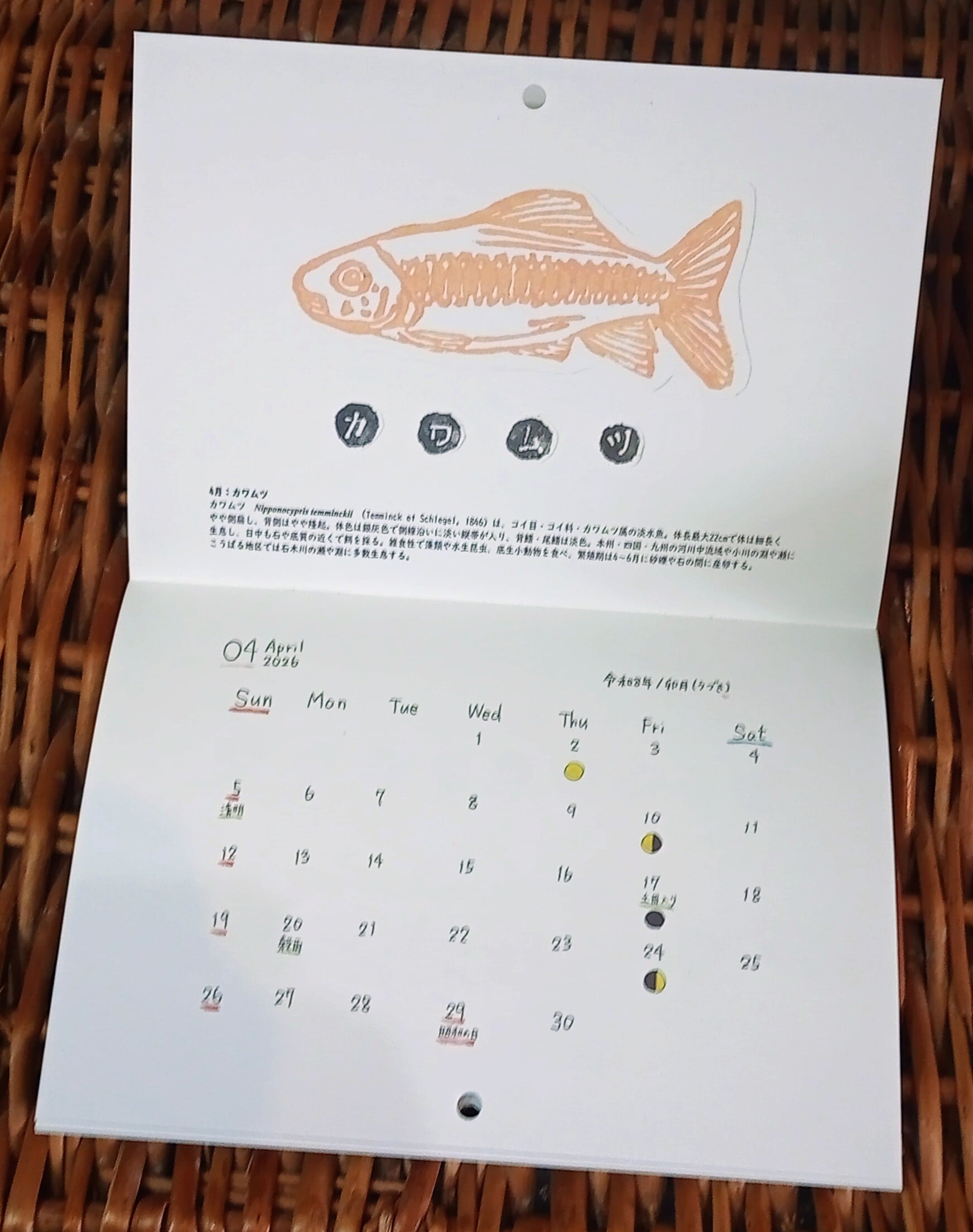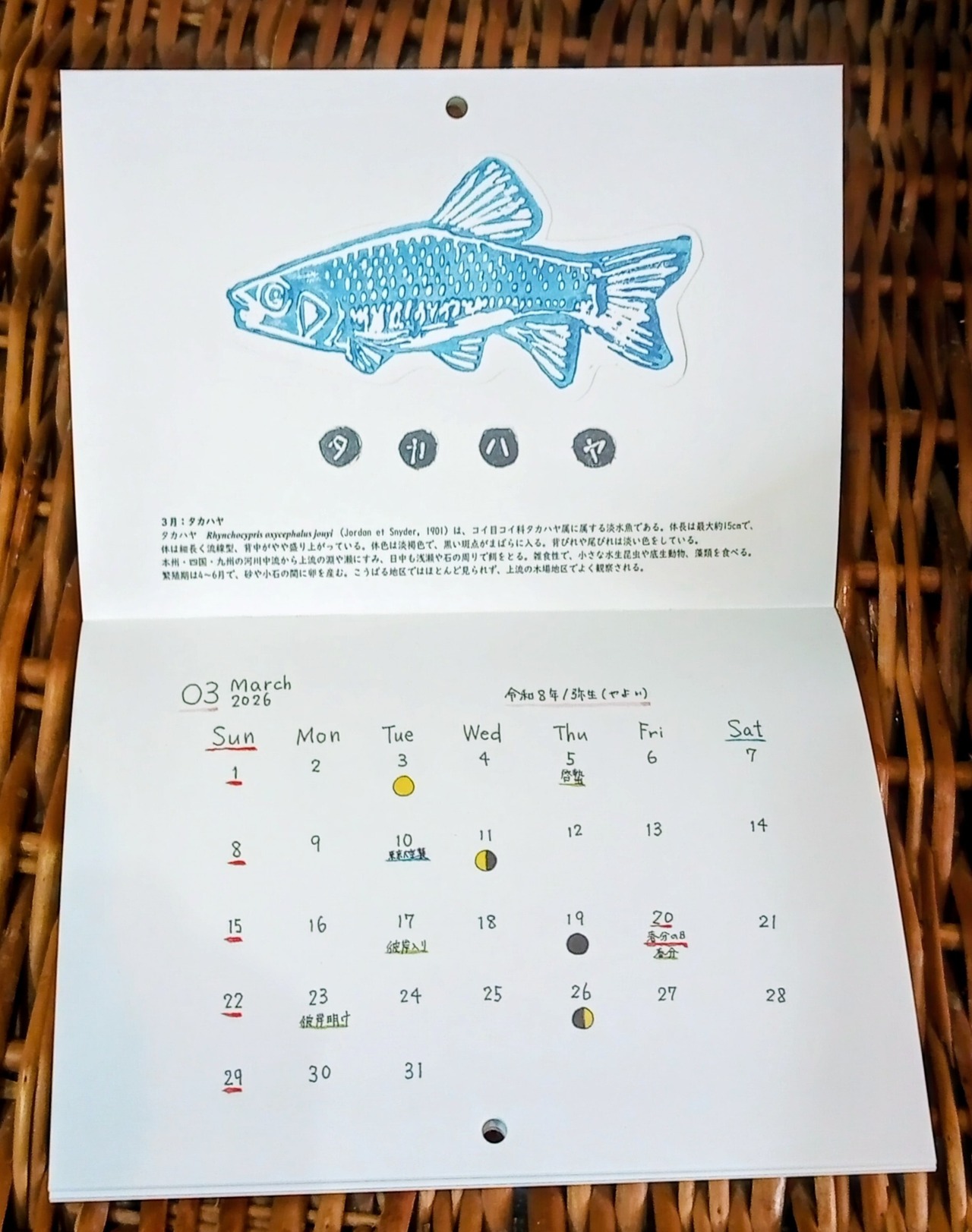 「石木川の川魚カレンダー2026」を