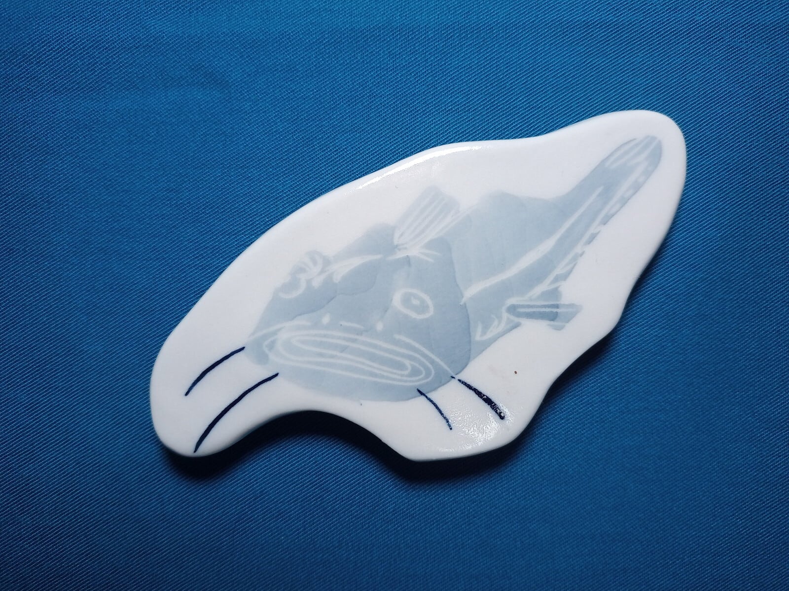 石丸穂澄 が消しゴムハンコで生み出した「石木川の生きものたち」の絵をもとに、ヨナタンストア 奥田容子 が一点一点手描きで絵付け・焼成しました。